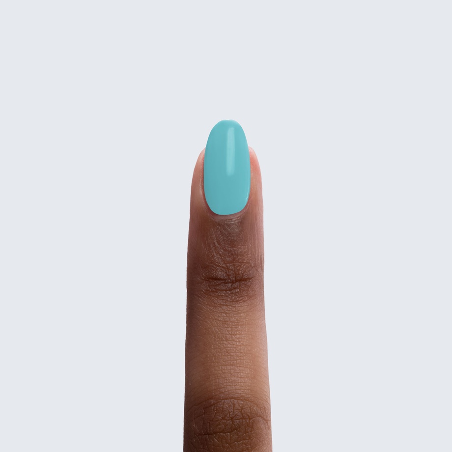 You’ll be glad you took the plunge with this robin’s egg blue polish.