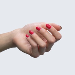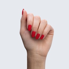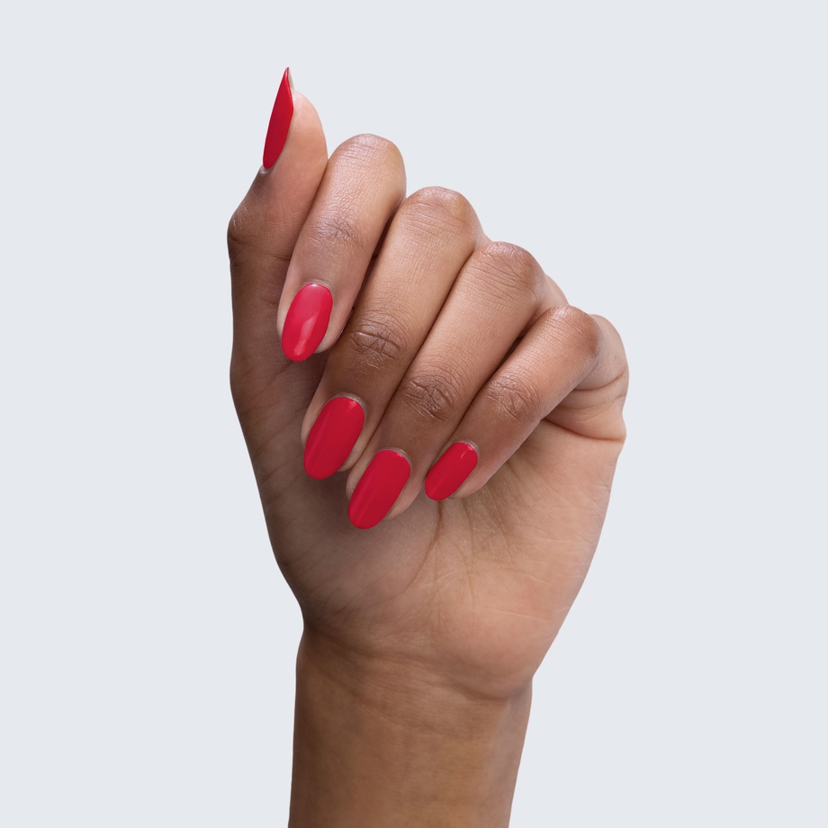 Here’s a poppy red polish with a certain je ne sais quoi.